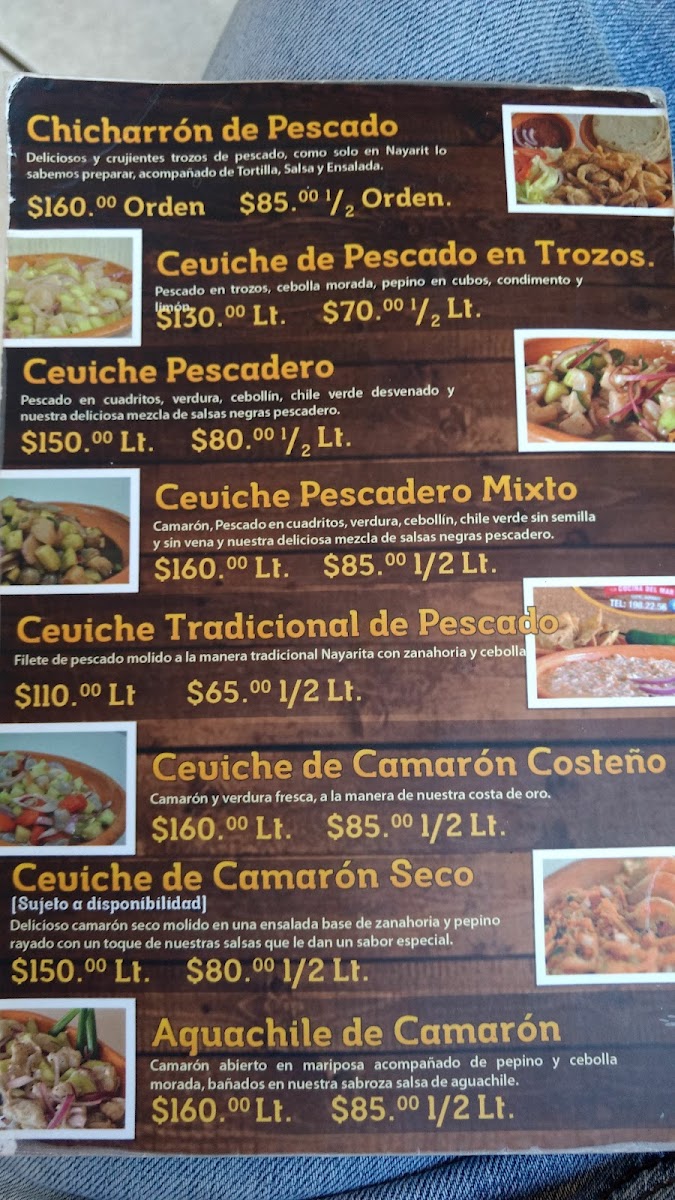 The menu at El Pescadero Cocina Del Mar is a vibrant celebration of coastal flavors, blending traditional Mexican seafood with inventive twists. Standout offerings like Ceviche Mixto deliver a fresh, zesty punch, perfectly balancing citrus with the natural sweetness of shrimp, fish, and octopus. The Chicharrón de Pescado is a crisp, golden delight, satisfying both texture and flavor cravings, while Mexcaltitán showcases the richness of local seafood stews with bold, comforting spices. For beverages, the Michelada Con Chile Seco adds a smoky, spicy edge that pairs beautifully with the food, enhancing the overall dining experience. The dessert selection, featuring Marakame, provides a sweet yet subtle finish, capturing the essence of tropical fruits in a refined presentation. Overall, El Pescadero Cocina Del Mar’s menu demonstrates careful attention to detail, from seasoning and freshness to presentation, offering a cohesive and memorable culinary journey that highlights the best of Mexican coastal cuisine.